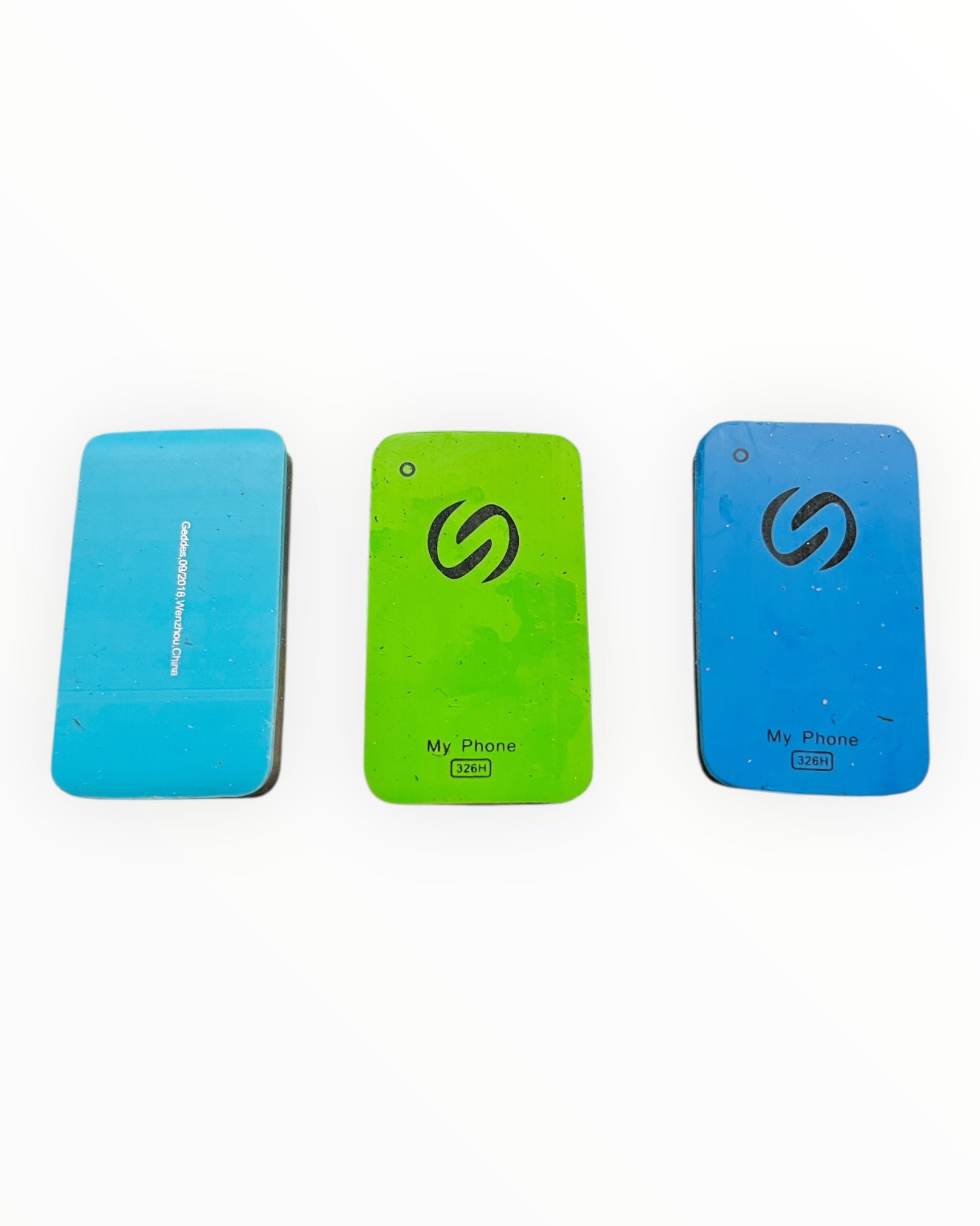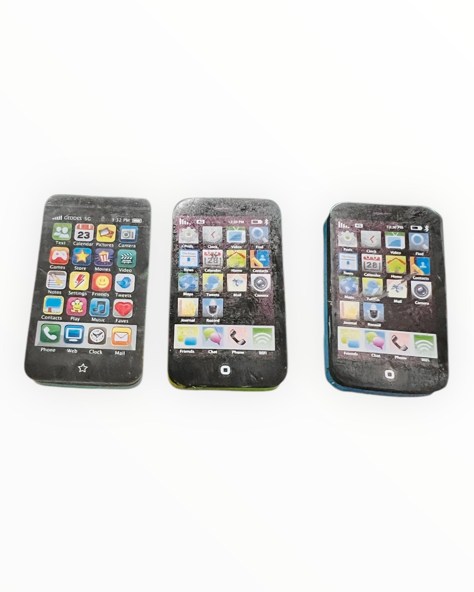 Stay connected with a smart phone.  Each piece is crafted with a smooth, matte rubber-like texture and features a colorful array of simulated app icons on the front screens. Each phone includes a variety of bright backing colors, including lime green, sky blue, and a deeper cobalt blue, all with a sleek, rounded-corner design.  You will receive one of the phones shown in the picture.