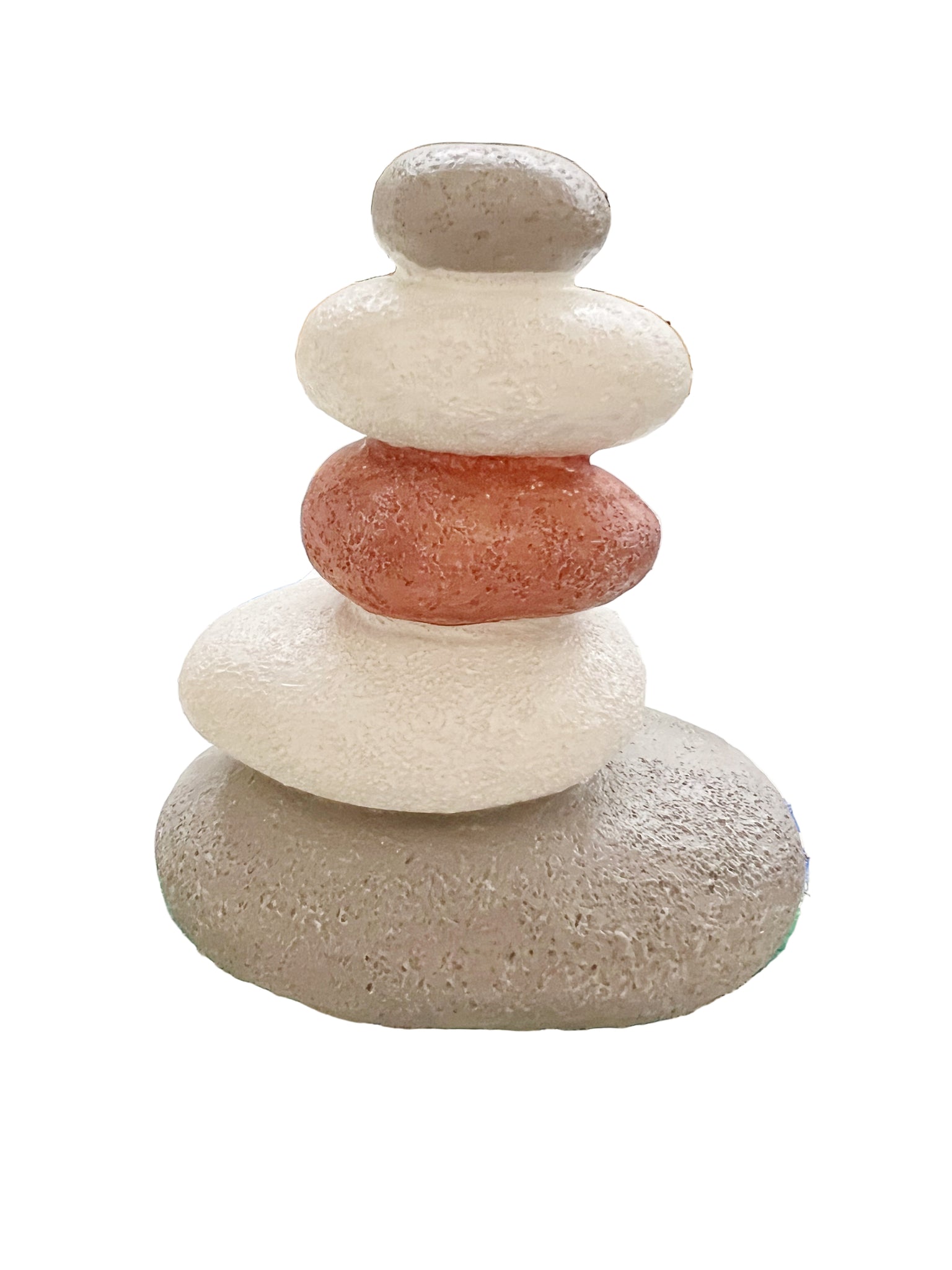 Rocks made out of resin and painted to look like stacked wellness rocks. This miniature is on the larger side at 5 inches high and a little over 4 inches wide with a depth of 2.75. The number of rocks and style changes in 3 configurations. Take a look at the 3 styles and choose your favorite by choosing the bottom rock color.