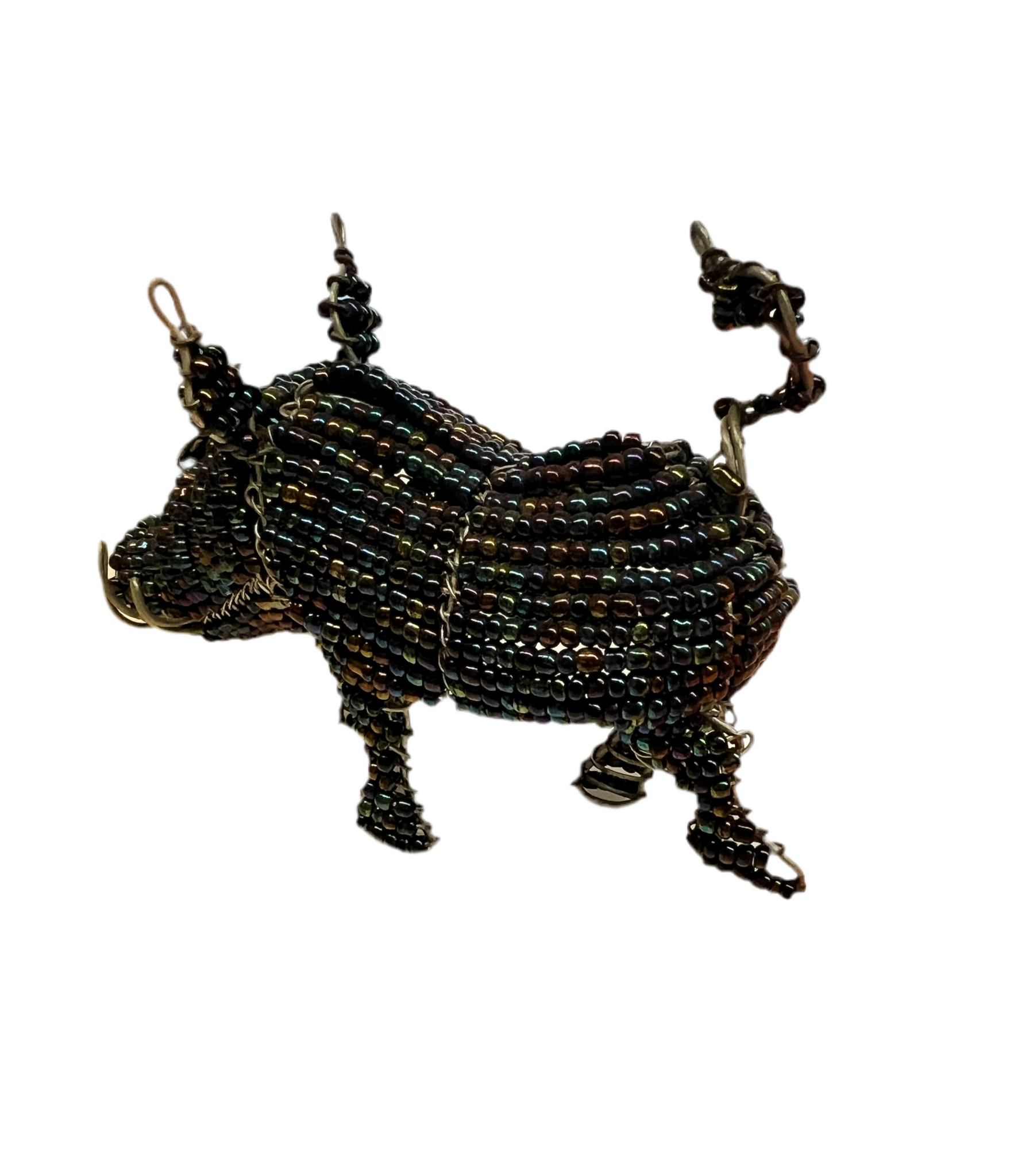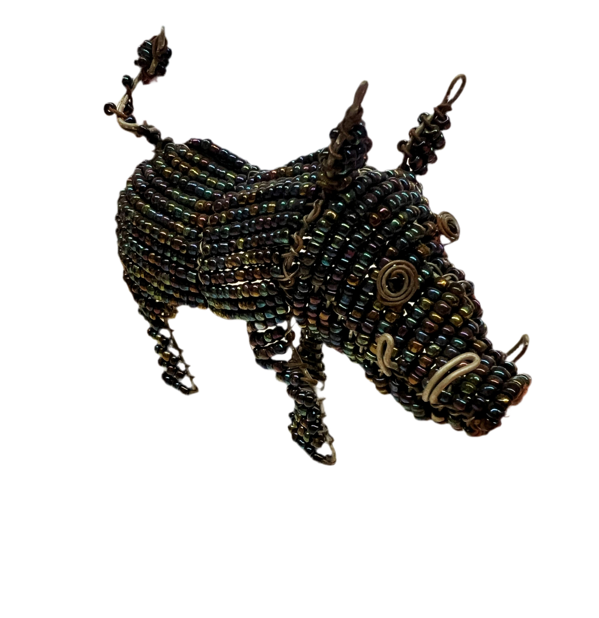 These pig are hand made with wire and beads by an artist named Brian in South Africa. He forms the wire into shape and threads each bead onto the wire by hand!