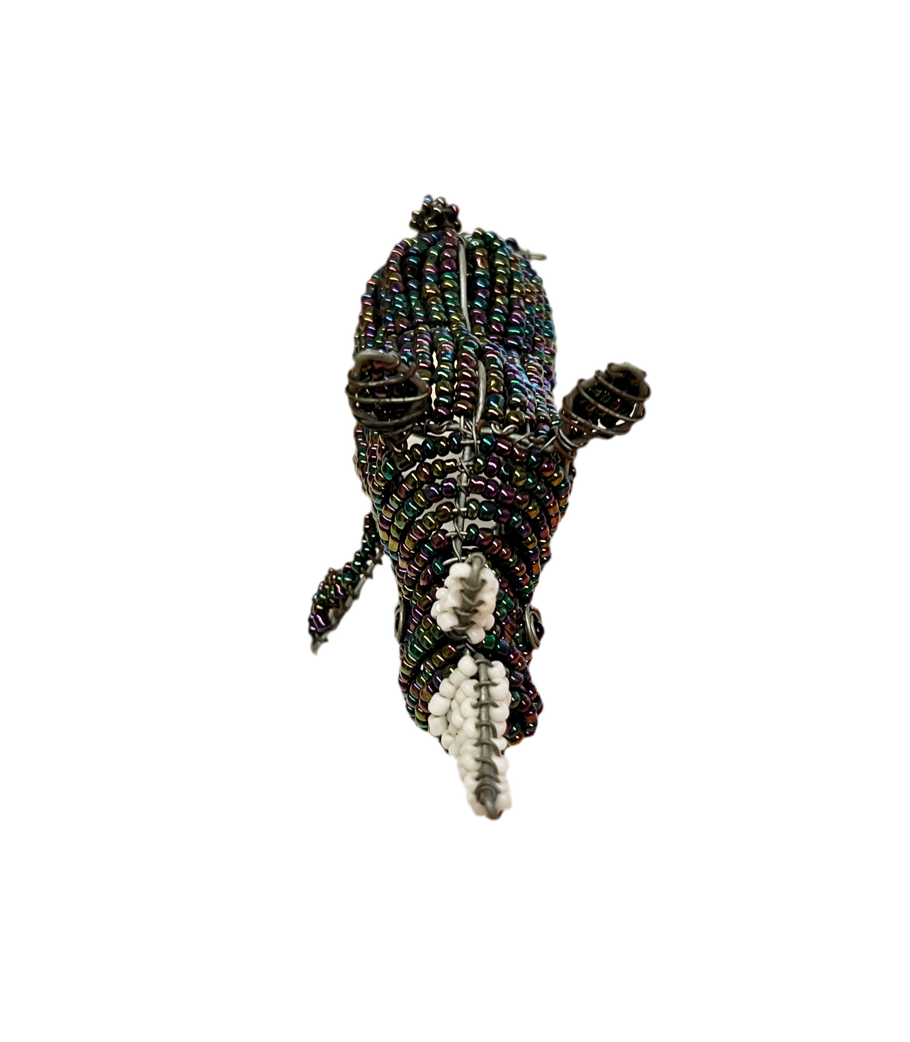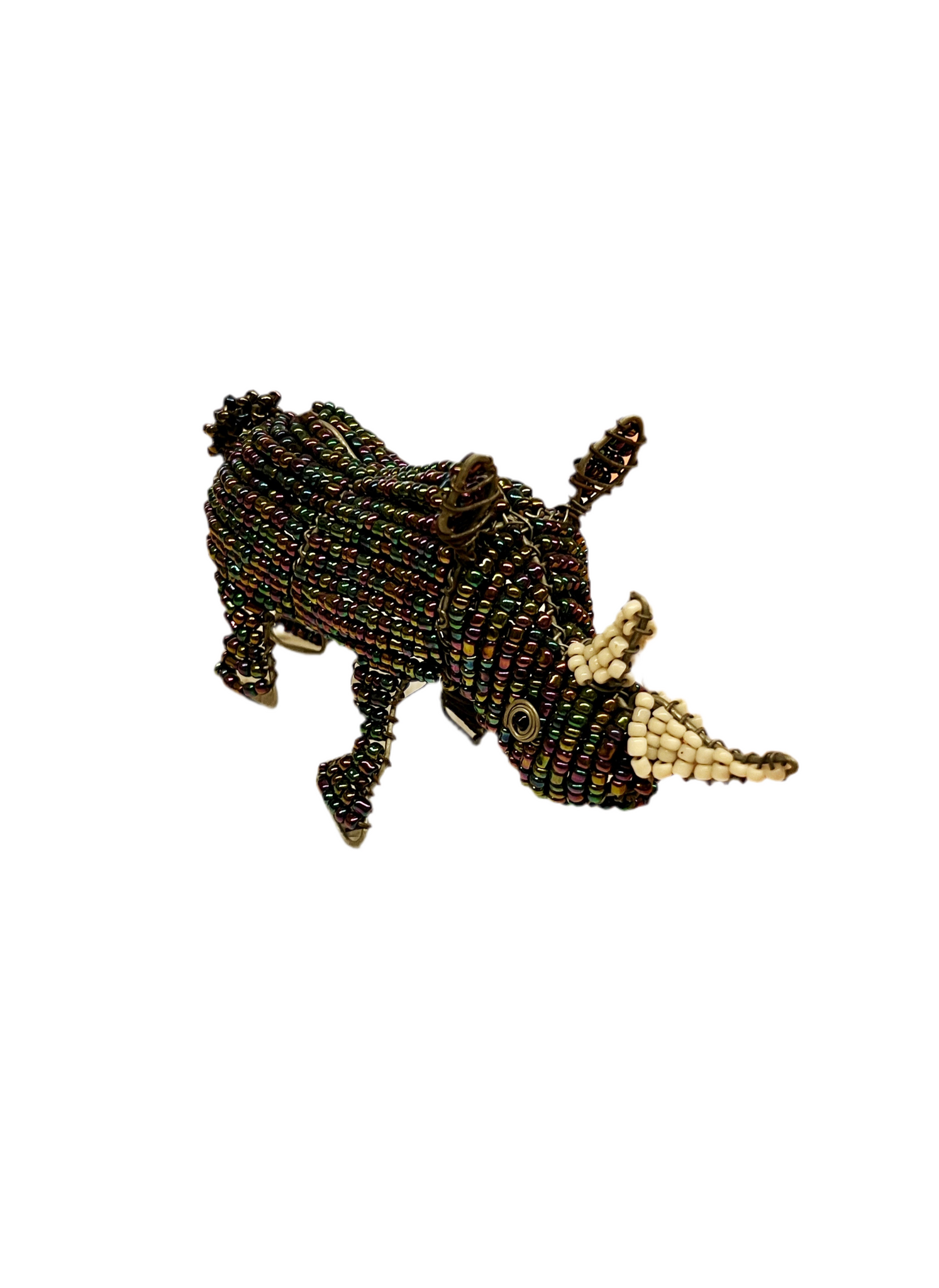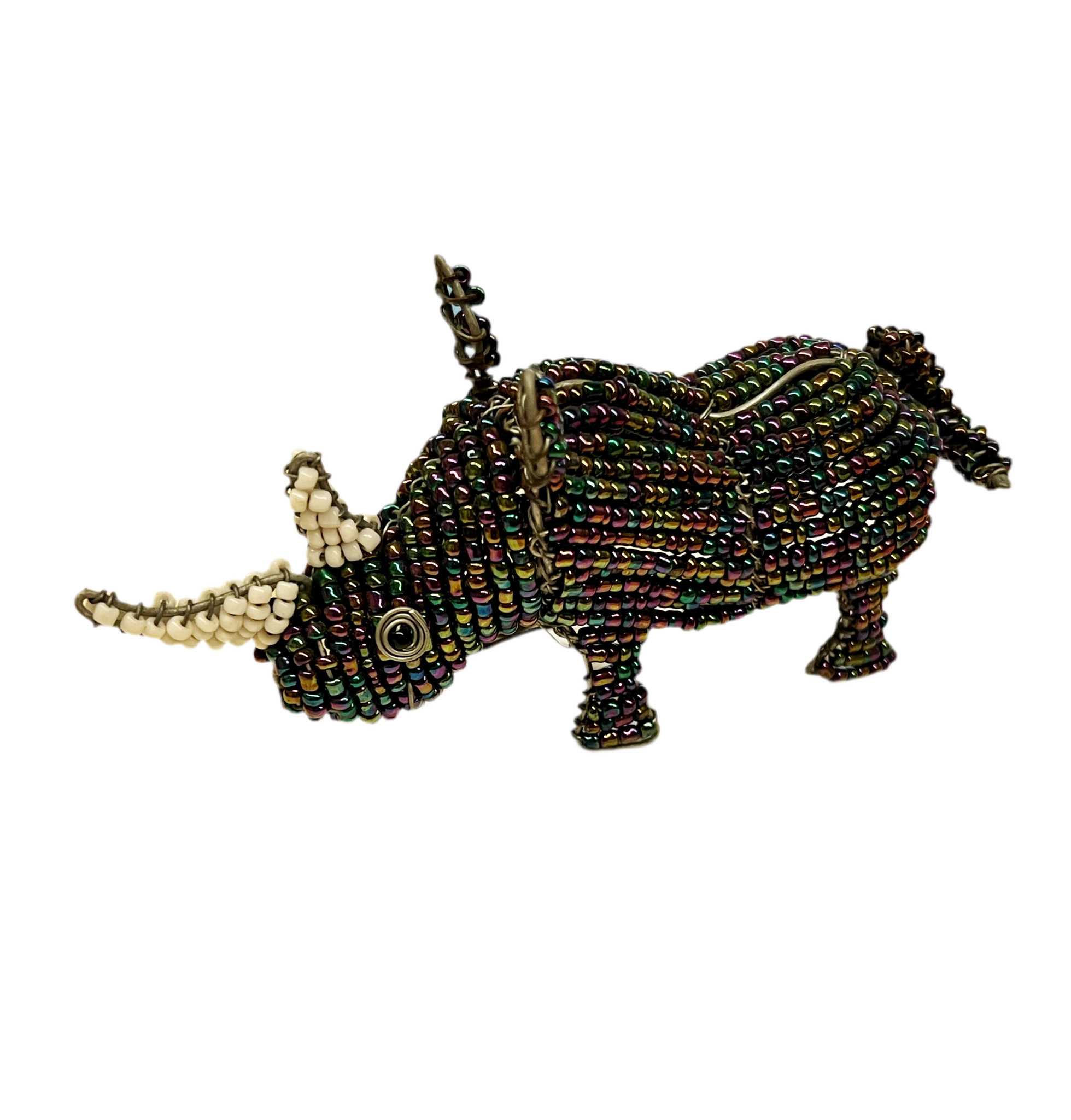These rhino are hand made with wire and beads by an artist named Brian in South Africa. He forms the wire into shape and threads each bead onto the wire by hand!
